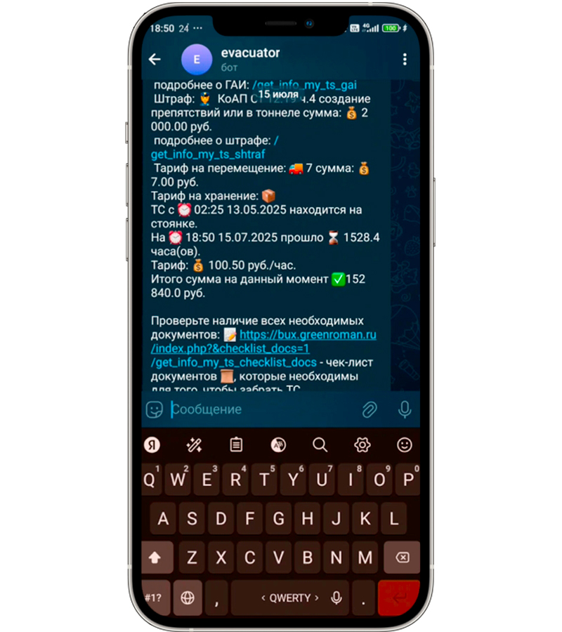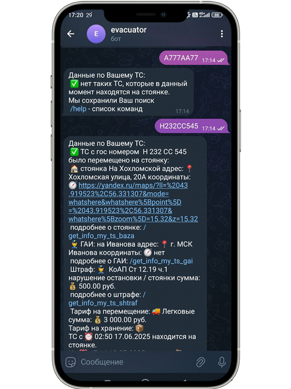 IT cистема для штрафстоянок и эвакуаторов в Telegram ботe